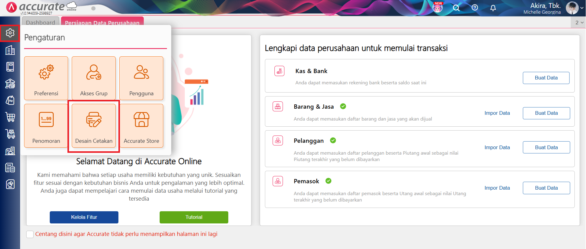 Akses ke menu Desain Cetakan