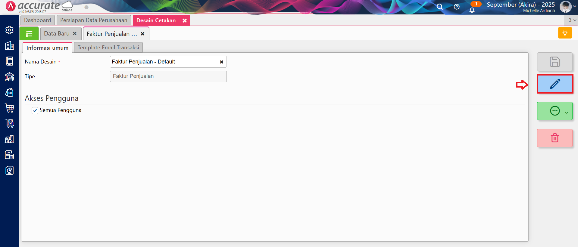 - Pilih desain cetakan tersebut, dan klik tombol Buka Desainer (icon Pensil).