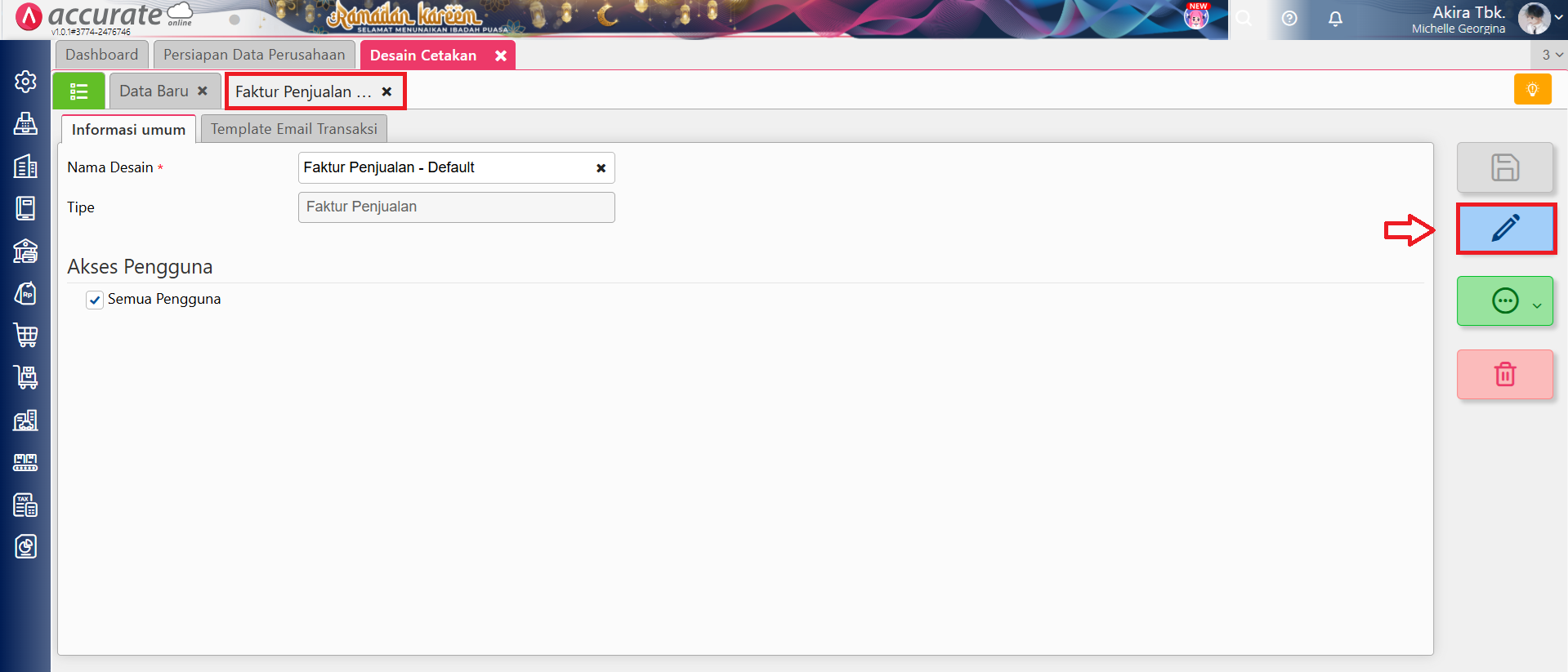 2. Pilih desain cetakan tersebut, dan klik tombol Buka Desainer (icon Pensil).