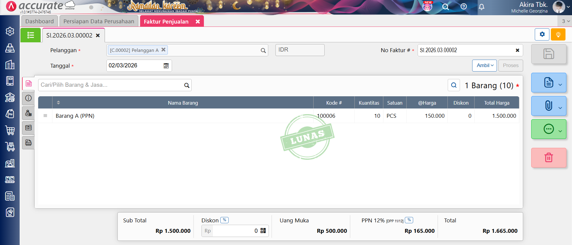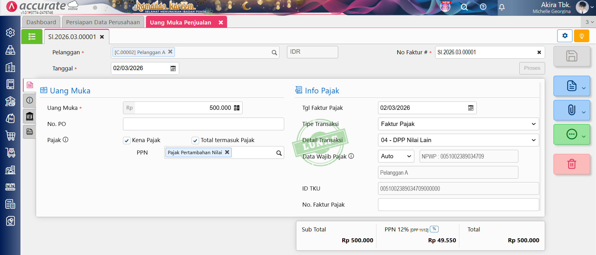 Berikut langkah-langkah untuk menampilkan uang muka di preview desain cetakan: