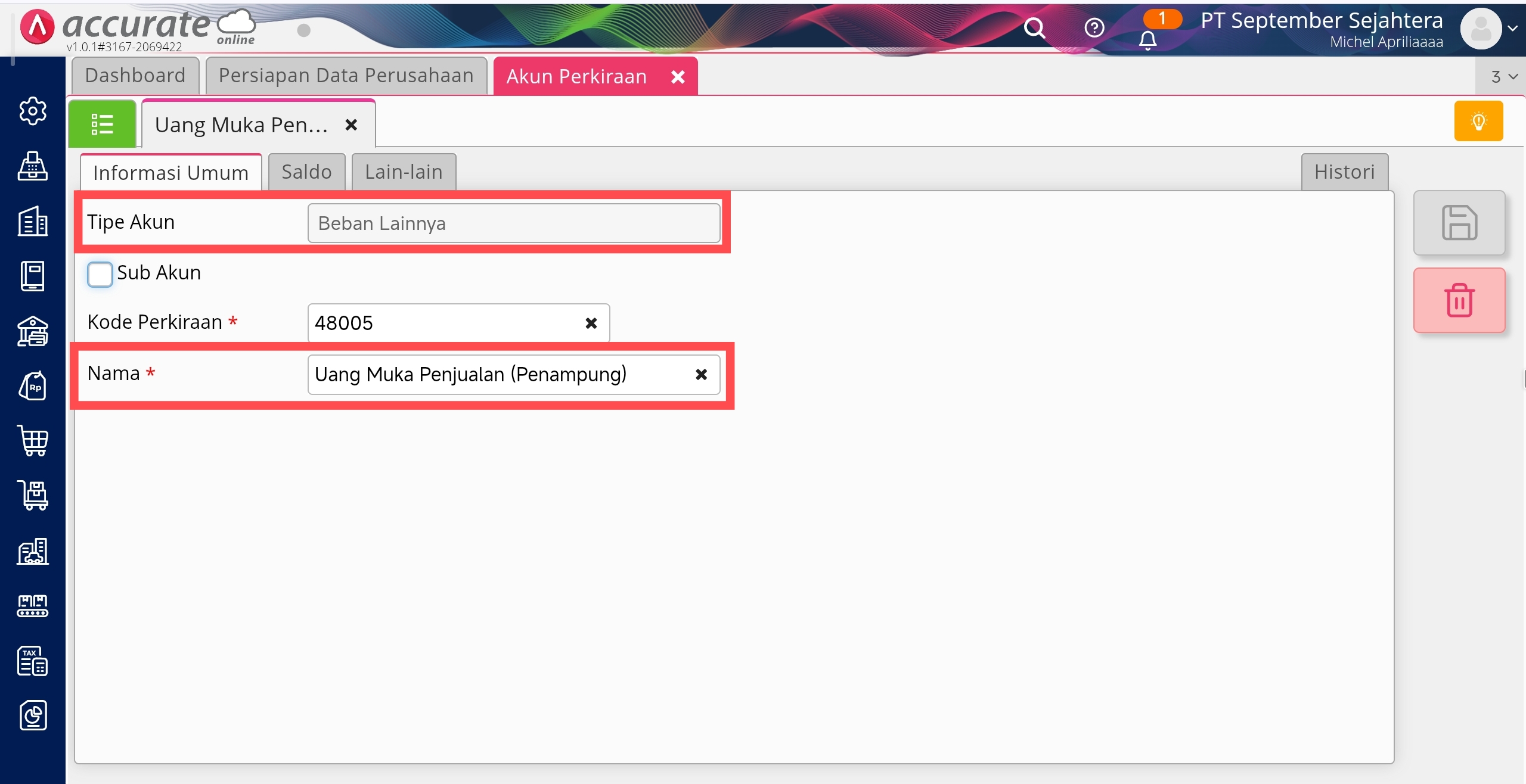 Membuat Akun Penampung Uang Muka