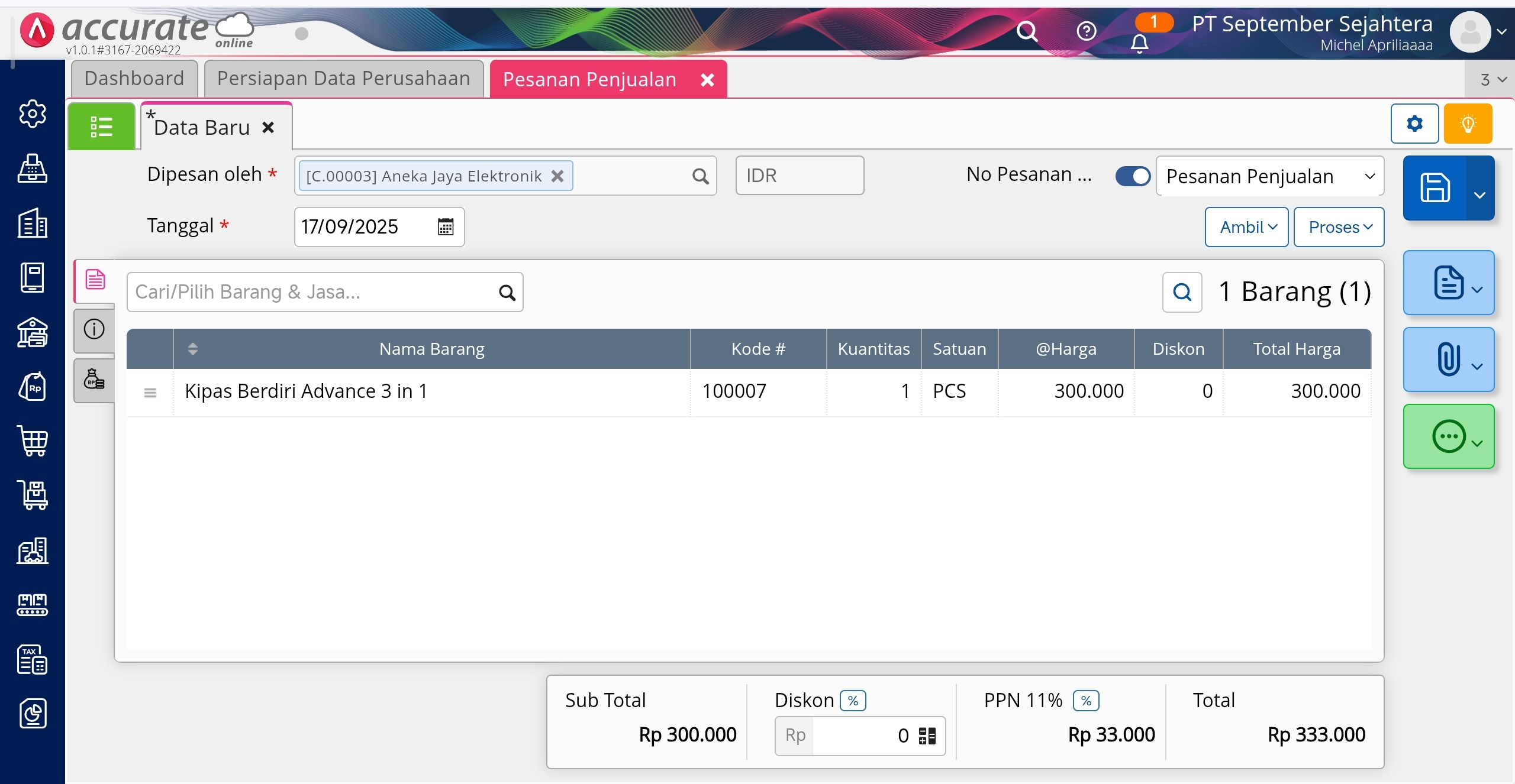 Membuat Transaksi Pesanan Penjualan