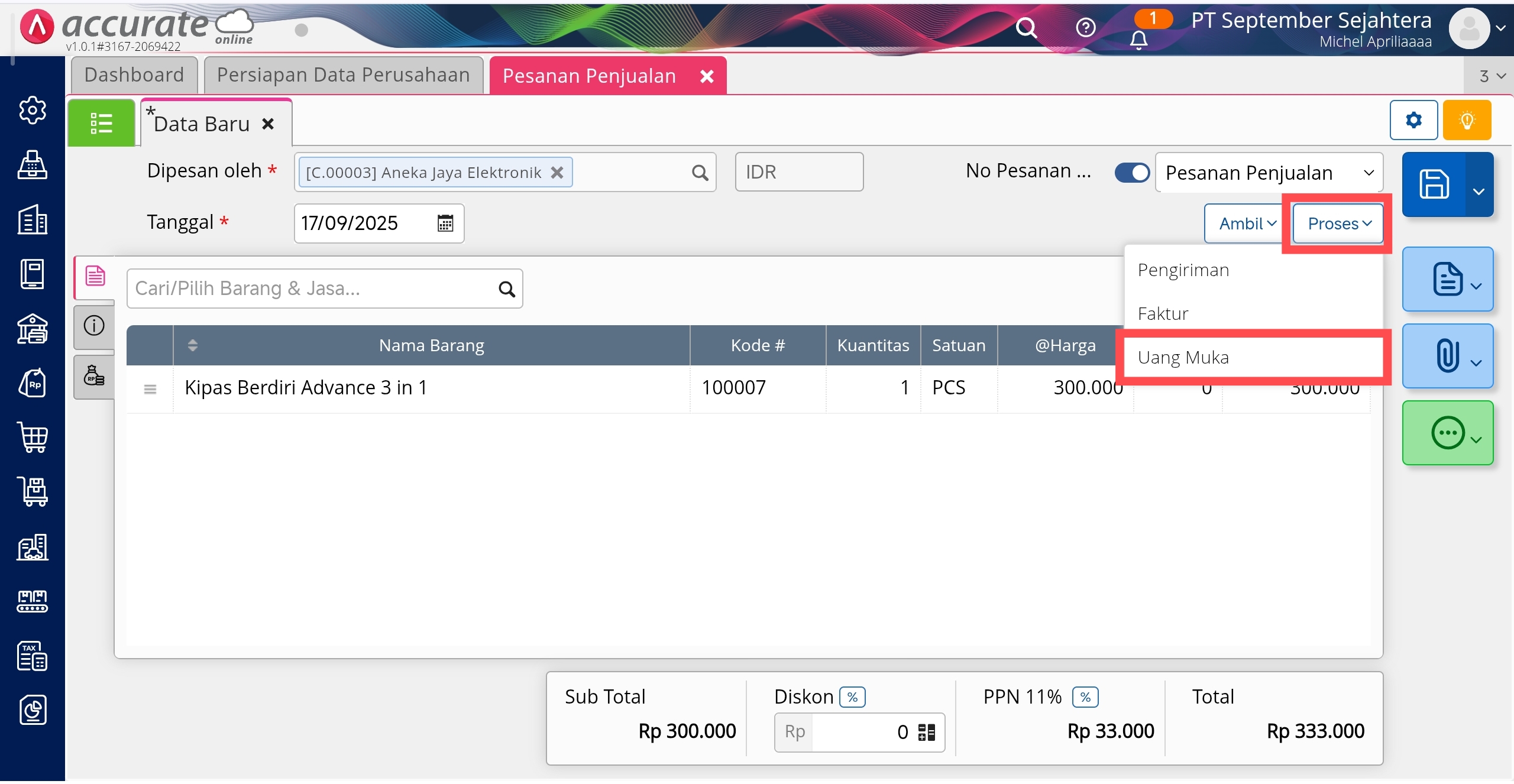 Proses Pesanan Penjualan ke Uang Muka