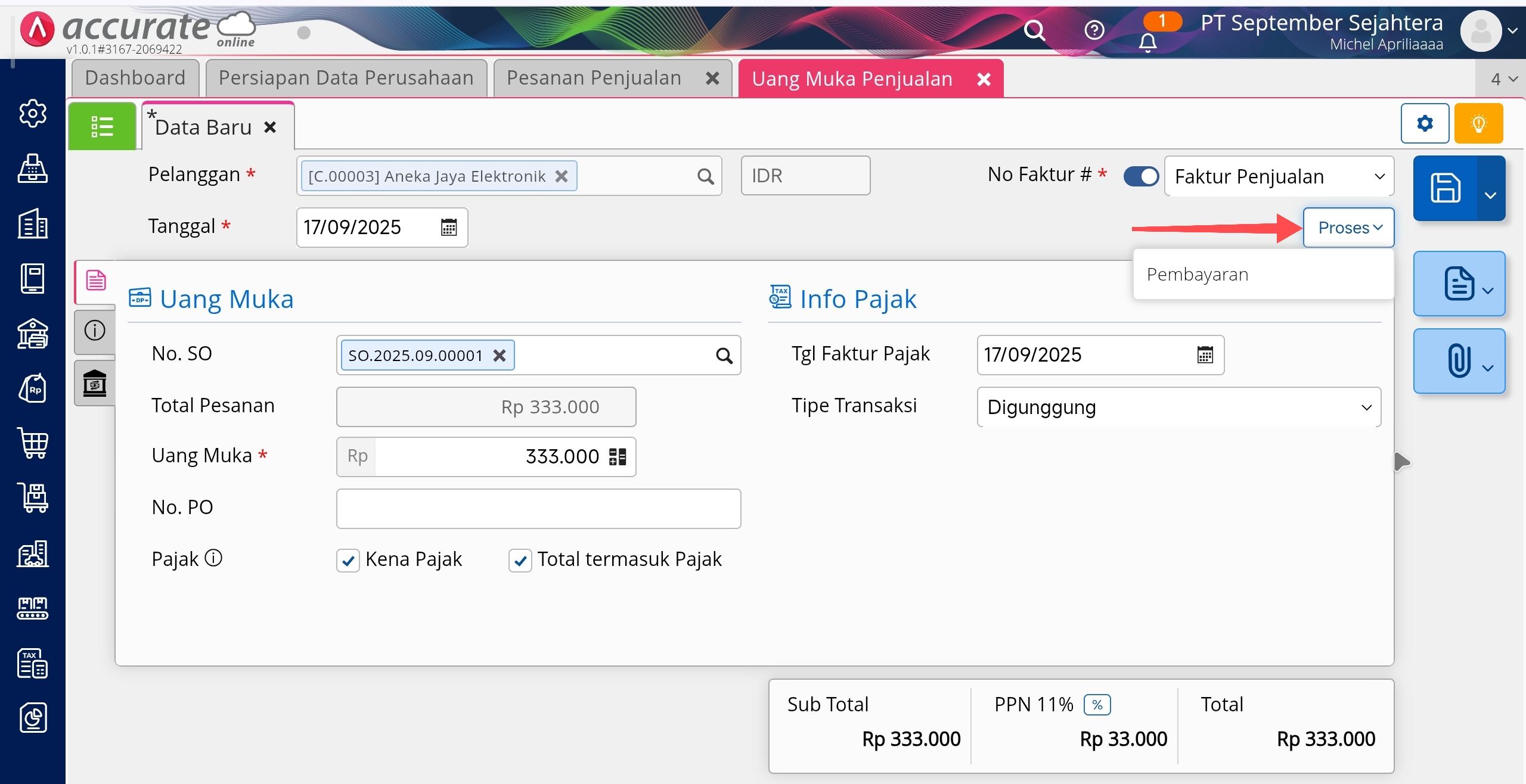 Proses Uang Muka Penjualan ke Pembayaran