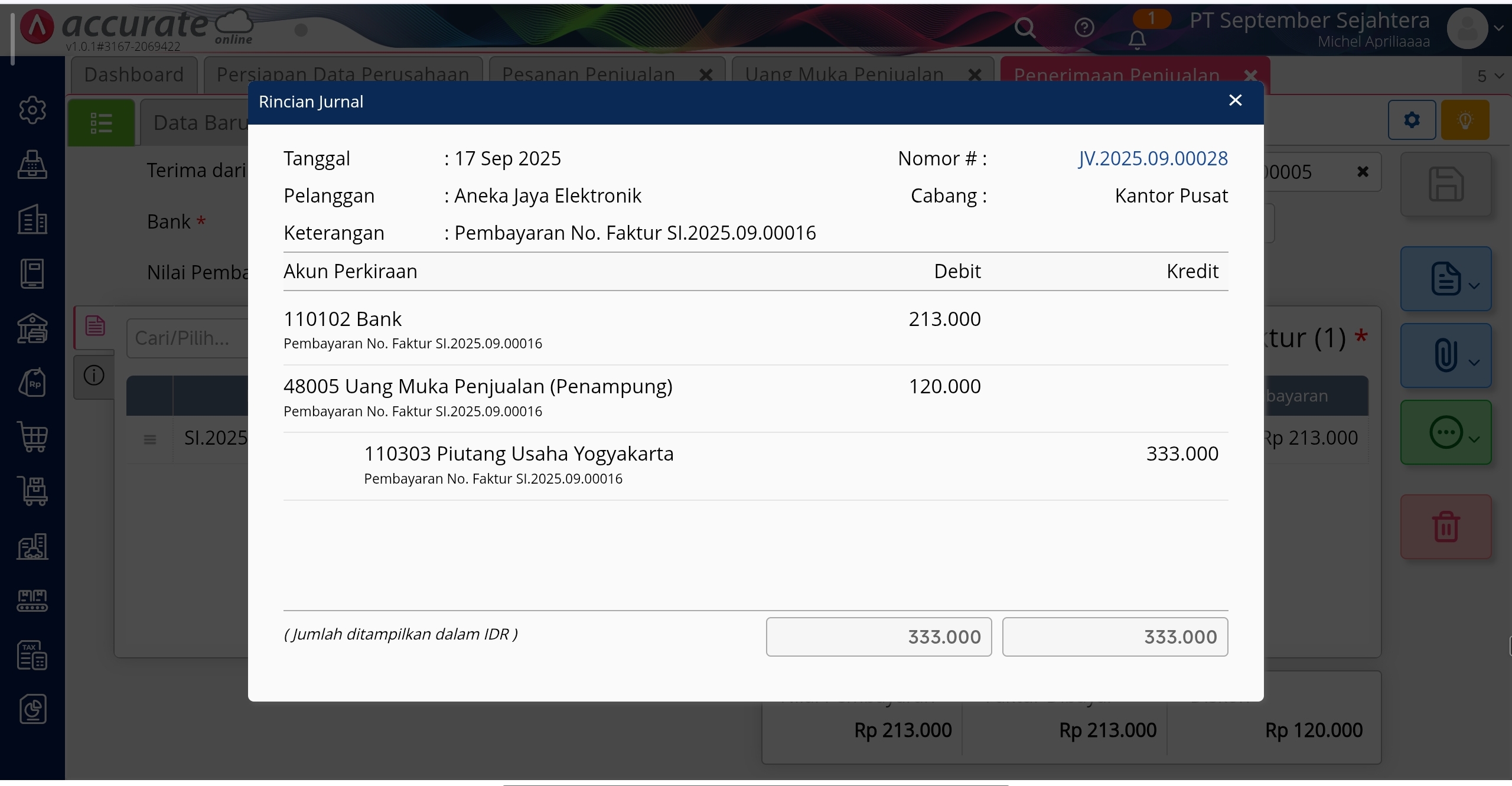 Rincian Jurnal Penerimaan Penjualan