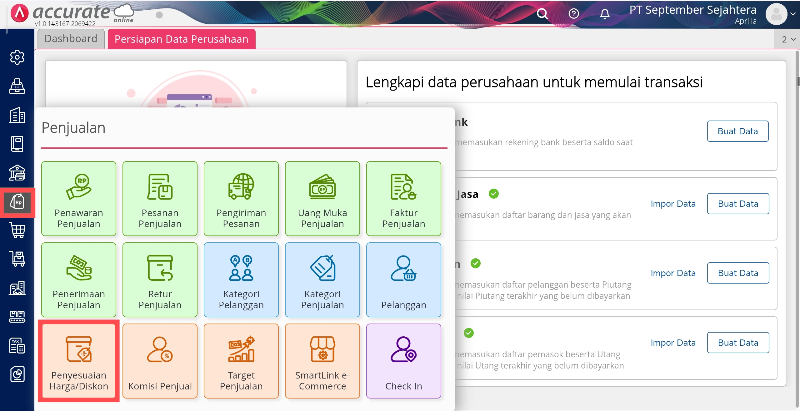 Buka Penyesuaian Harga/Diskon di Menu Penjualan