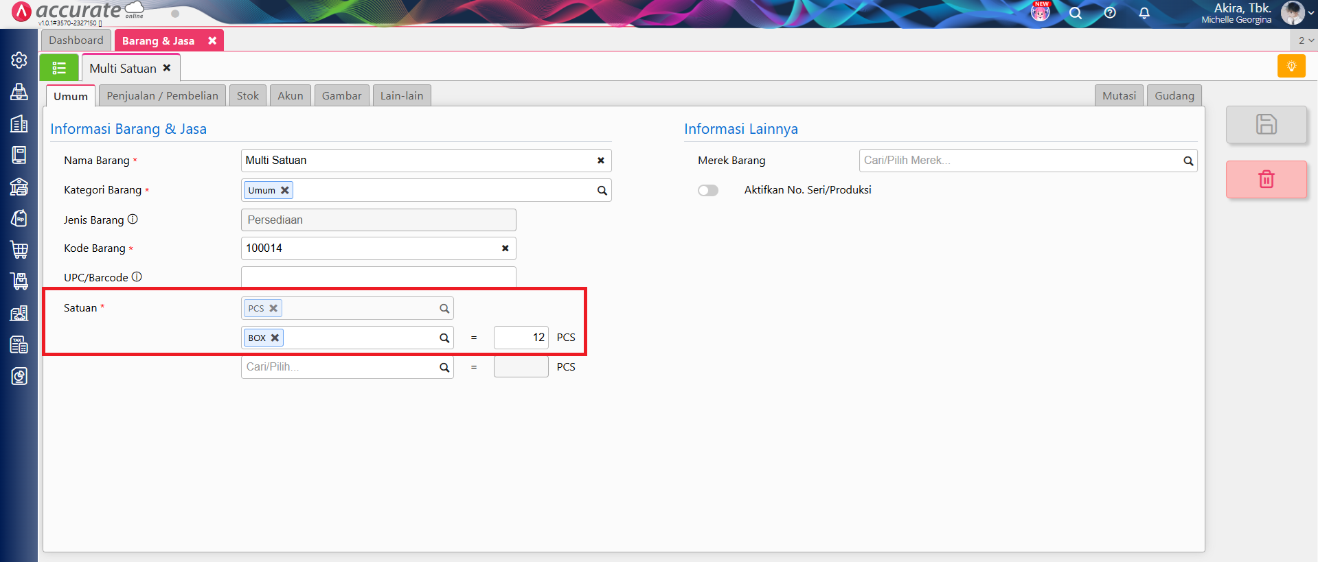 3. Pastikan pada barang yang akan menggunakan fitur Satuan Kontrol telah menggunakan Satuan Kedua atau lebih.