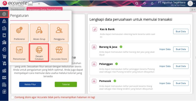 - Masuk ke Desain Cetakan dari menu Pengaturan.