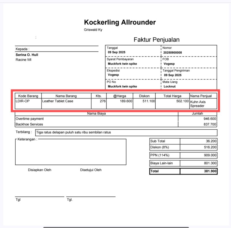 Berikut langkah-langkah untuk mengatur tinggi tabel dari detail item :
