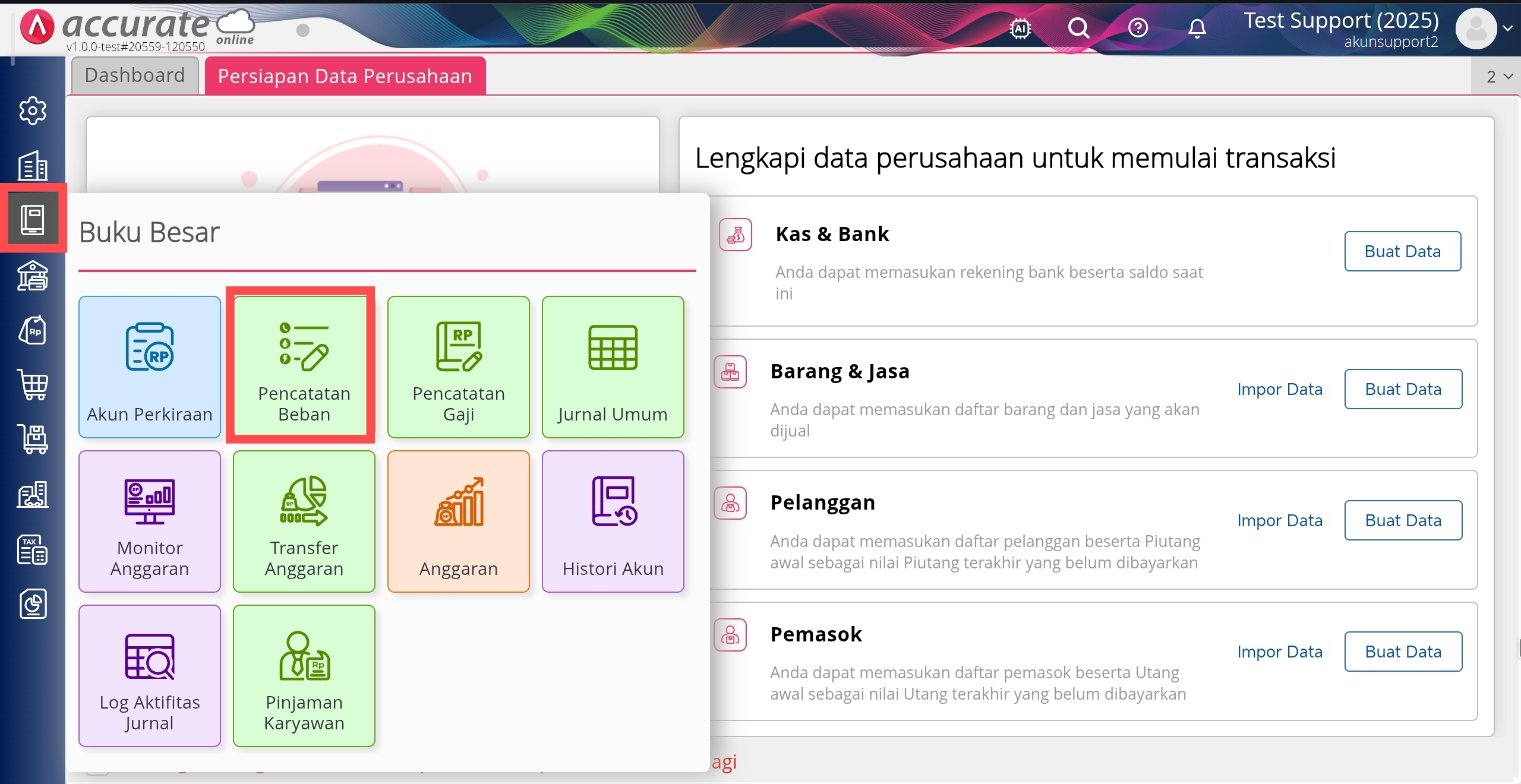 - Buka Pencatatan Beban di menu Buku Besar.