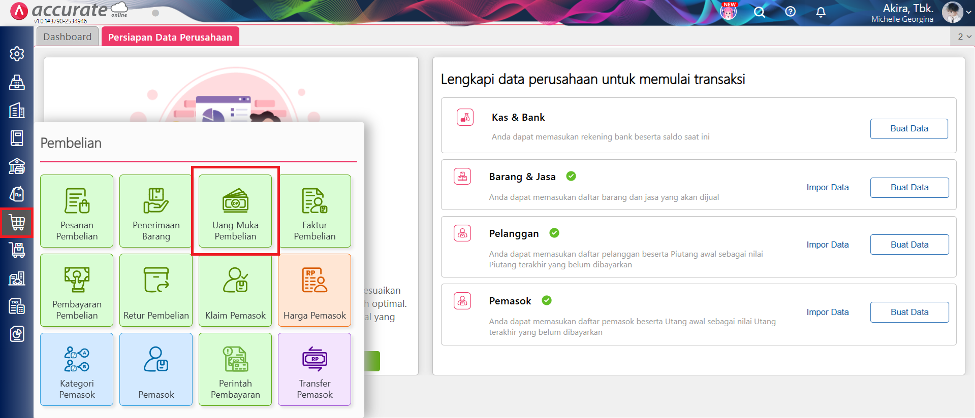 Akses ke menu Uang Muka Pembelian