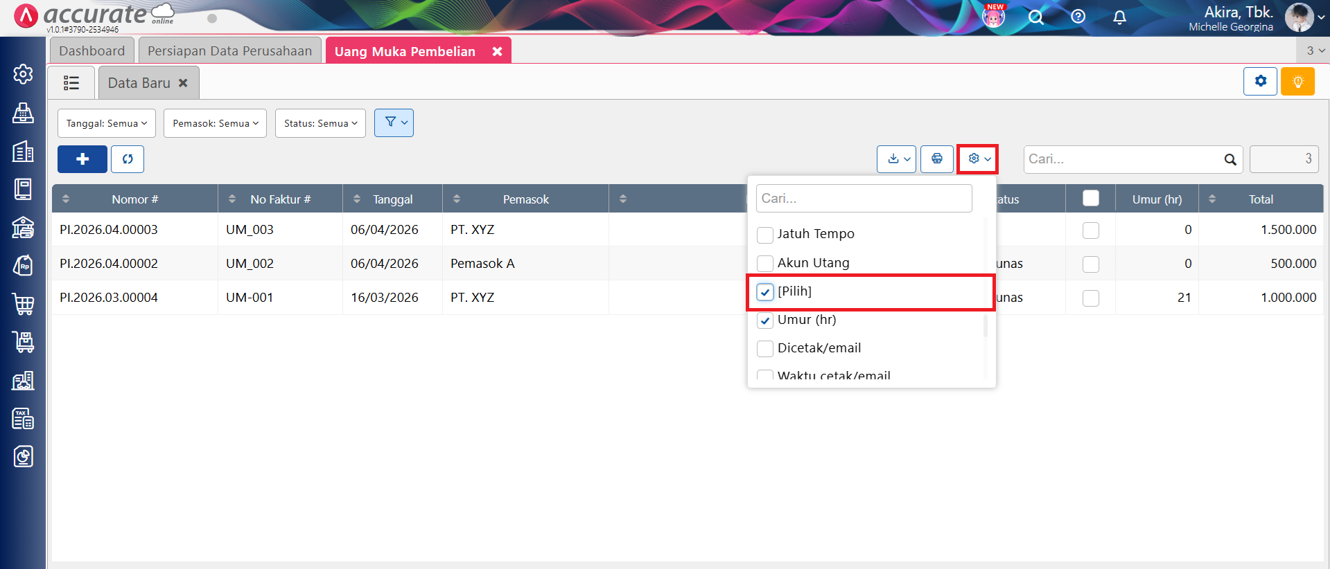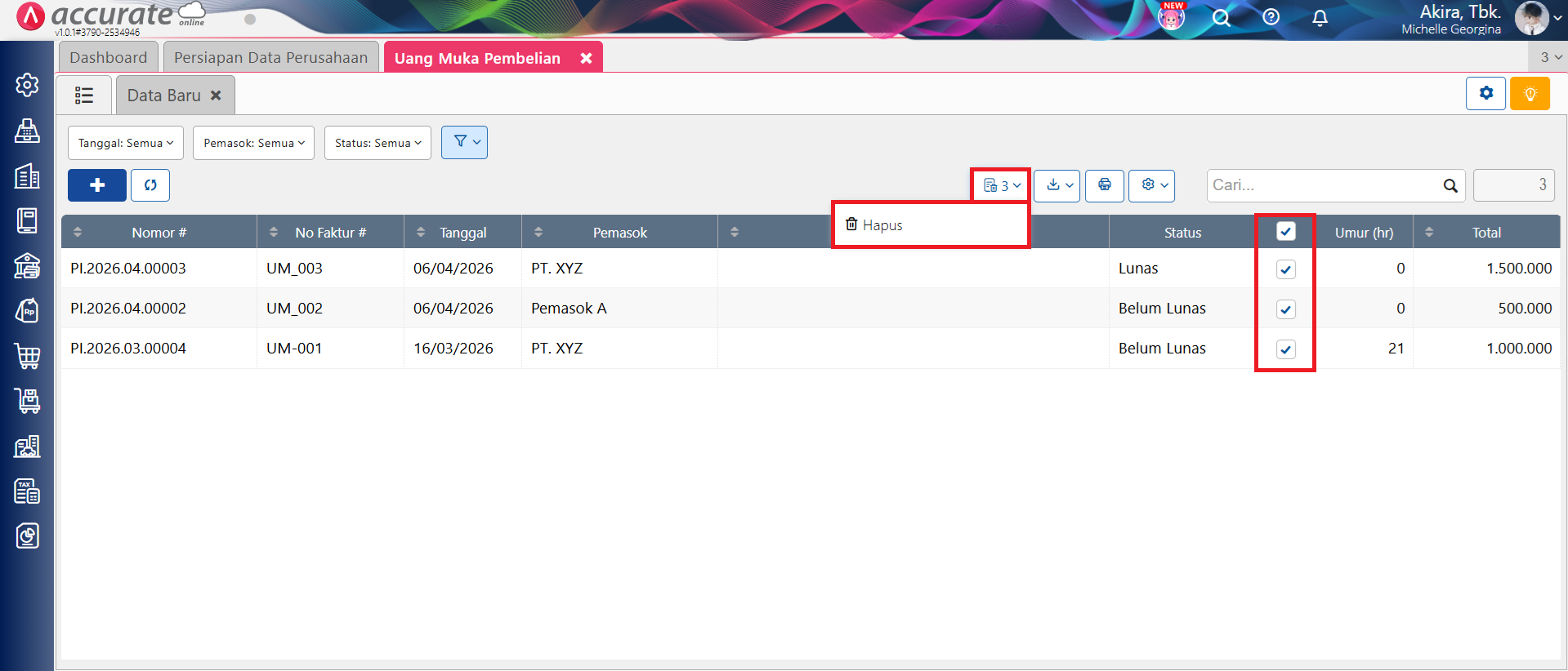 Berikut langkah-langkah menghapus transaksi Uang Muka Pembelian secara Massal: