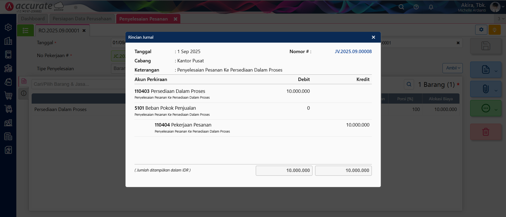 Catatan : pastikan akun Persediaan untuk Barang Persediaan Dalam Proses memilih ke akun Persediaan Dalam Proses di tab akun-nya agar jurnal transaksi saat Penyelesaian Pesanan seperti pada penjelasan di artikel ini.