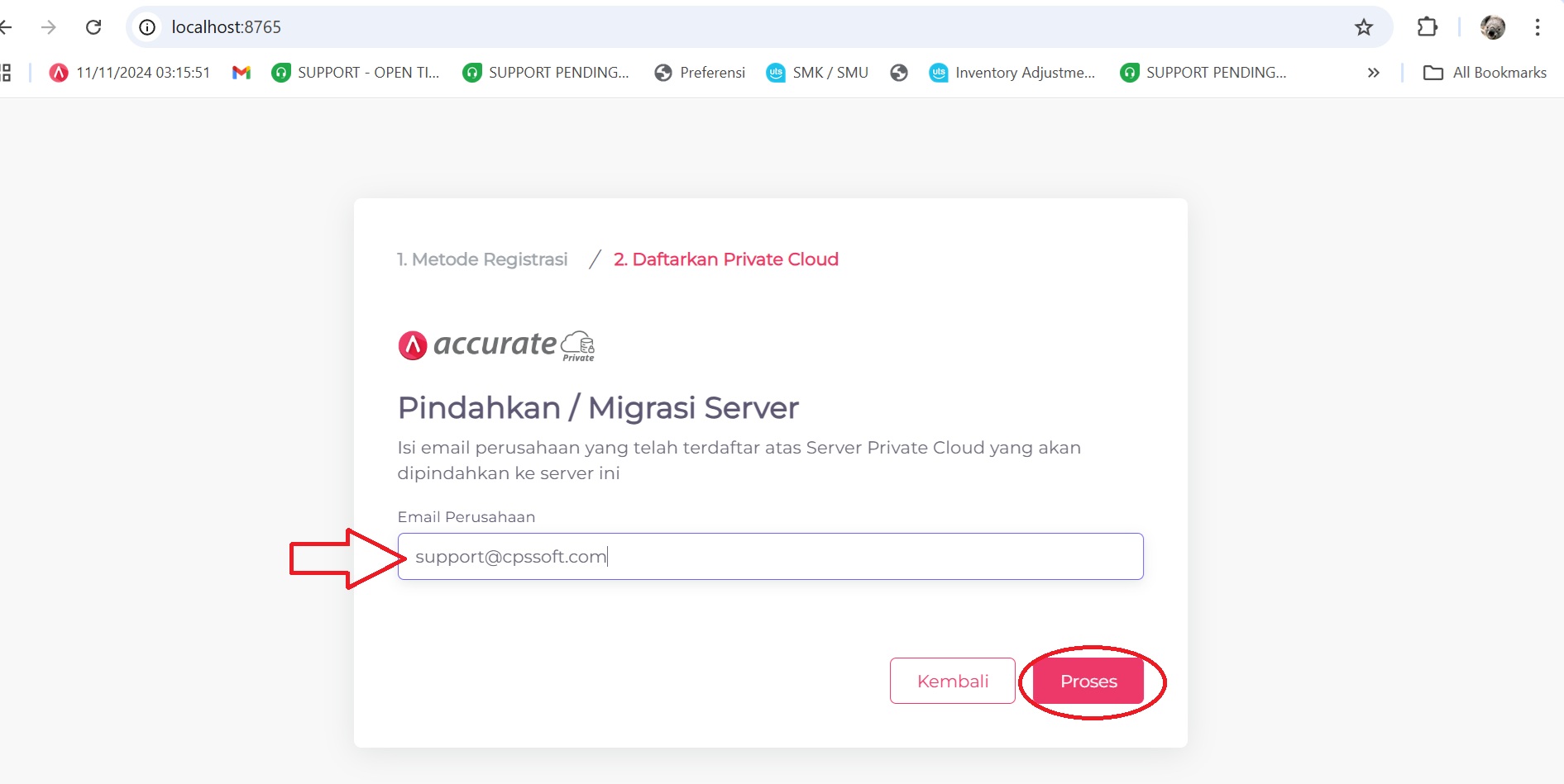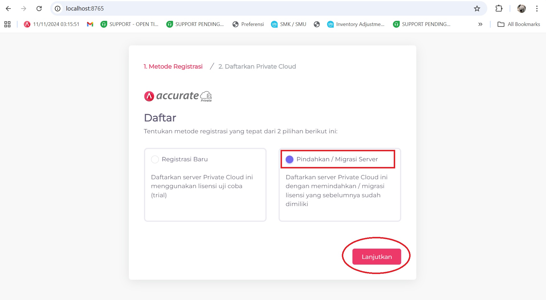 Berikut langkah-langkah untuk migrasi Accurate Online Private :
