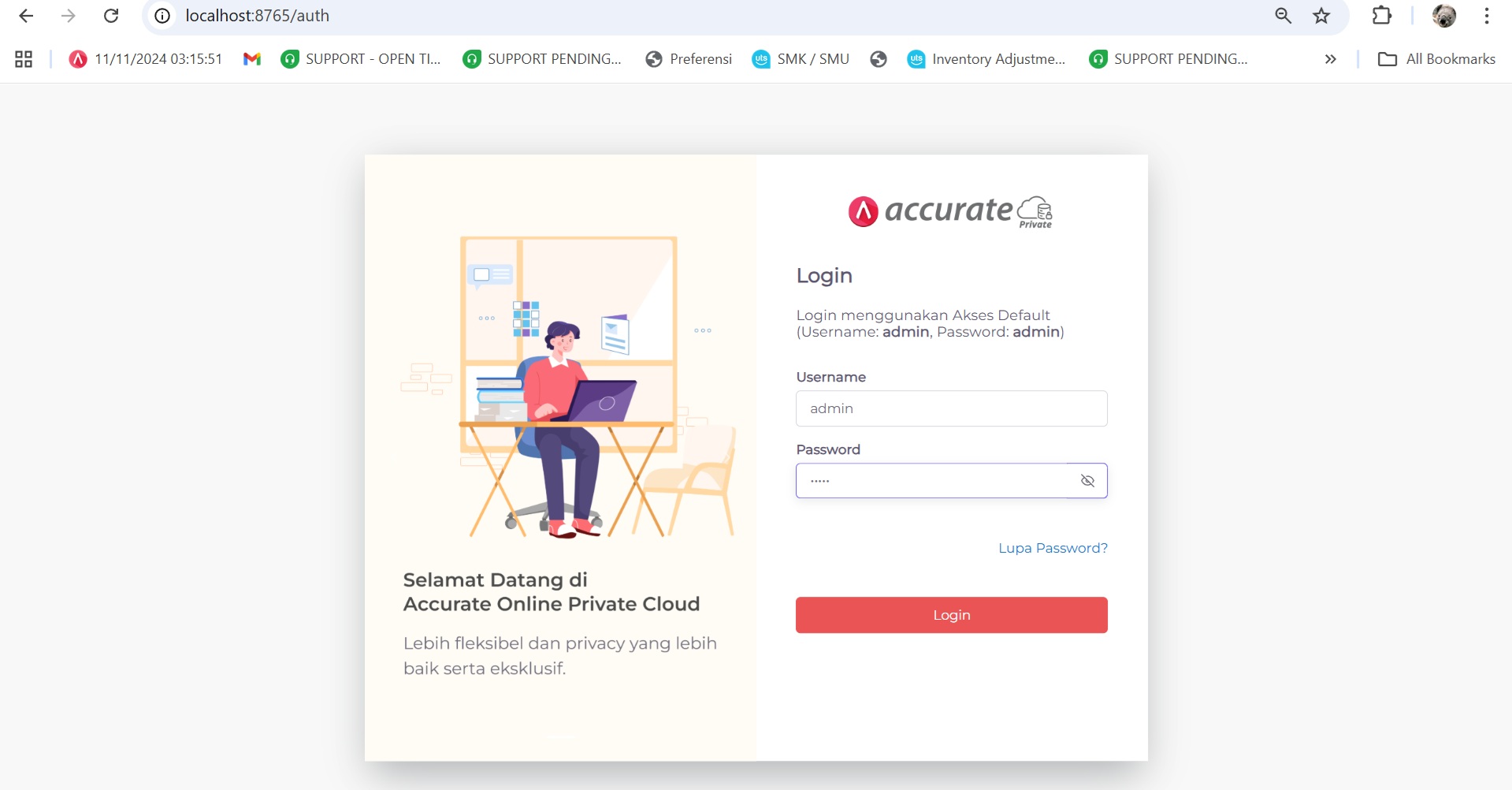 1. Akses web browser di komputer yang menginstall ACCURATE Online Private dan ketikkan http://localhost:8765/