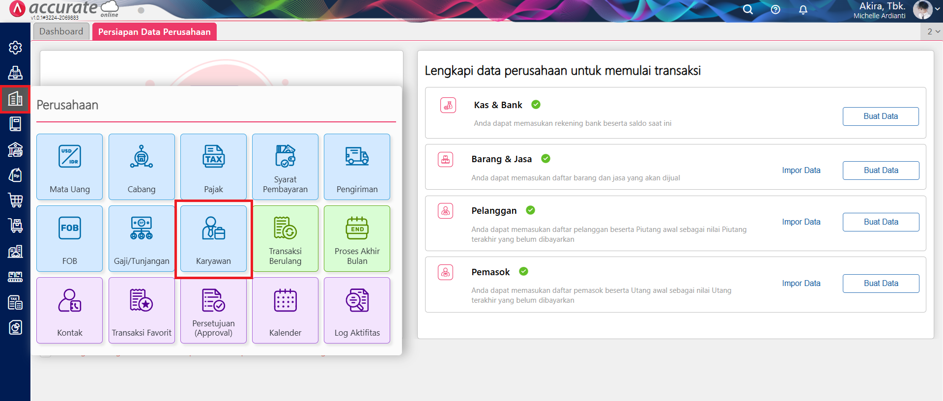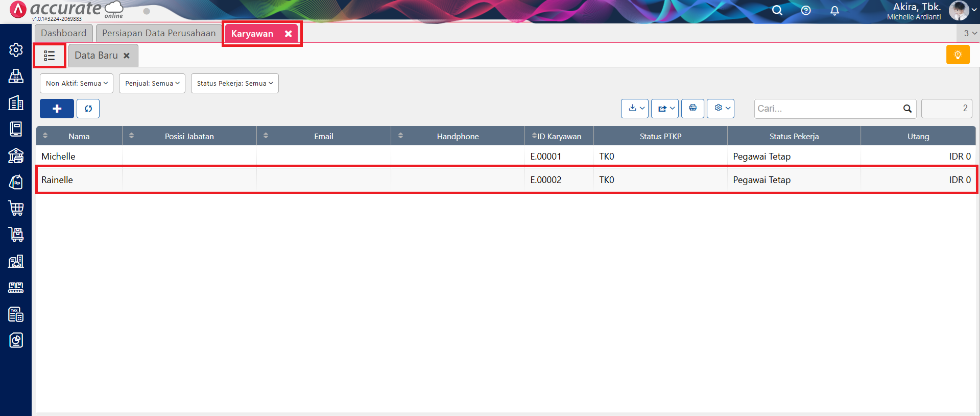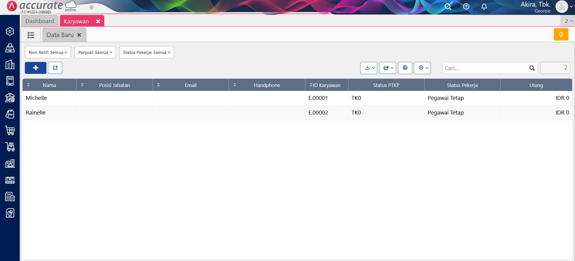 - Setelah-nya, Pengguna Operator yang dimaksud, silakan untuk login ke accurate.id dan akses Database yang dimaksud, seharusnya sudah bisa memilih Nama Penjual sebagai Default Penjual di Pelanggan dan nama penjual tersebut akan tampil pada Daftar Karyawan.
