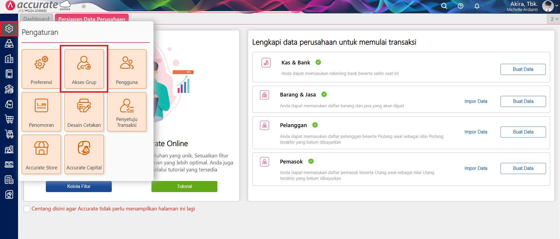 - Kemudian masuk ke menu Pengaturan | Akses Grup, kemudian pilih Akses Grup dari pengguna Operator yang bersangkutan.