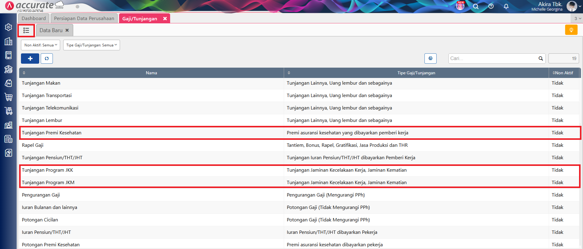 Mengatur akun Biaya BPJS pada gaji/tunjangan yang dipilih