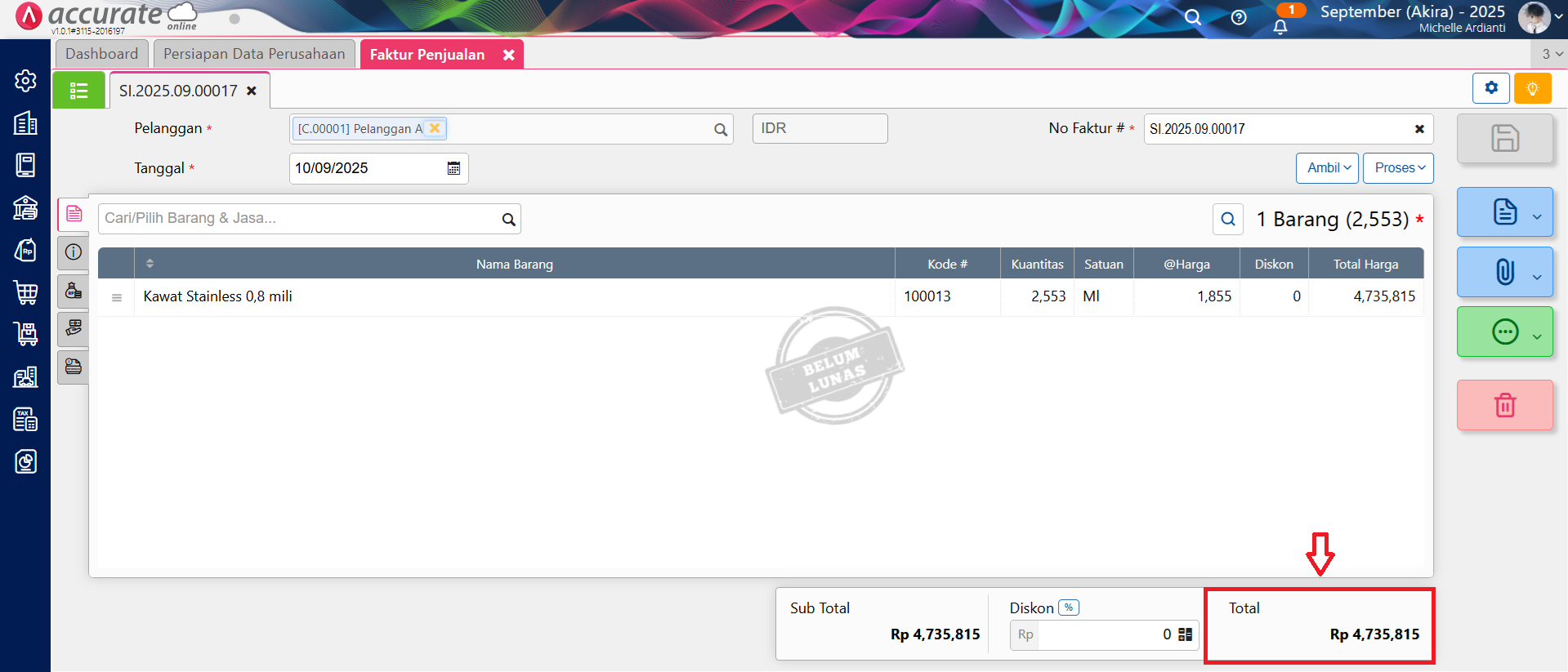 Memberikan nama label dengan informasi ‘Pembulatan’ dan ‘Total Invoice’