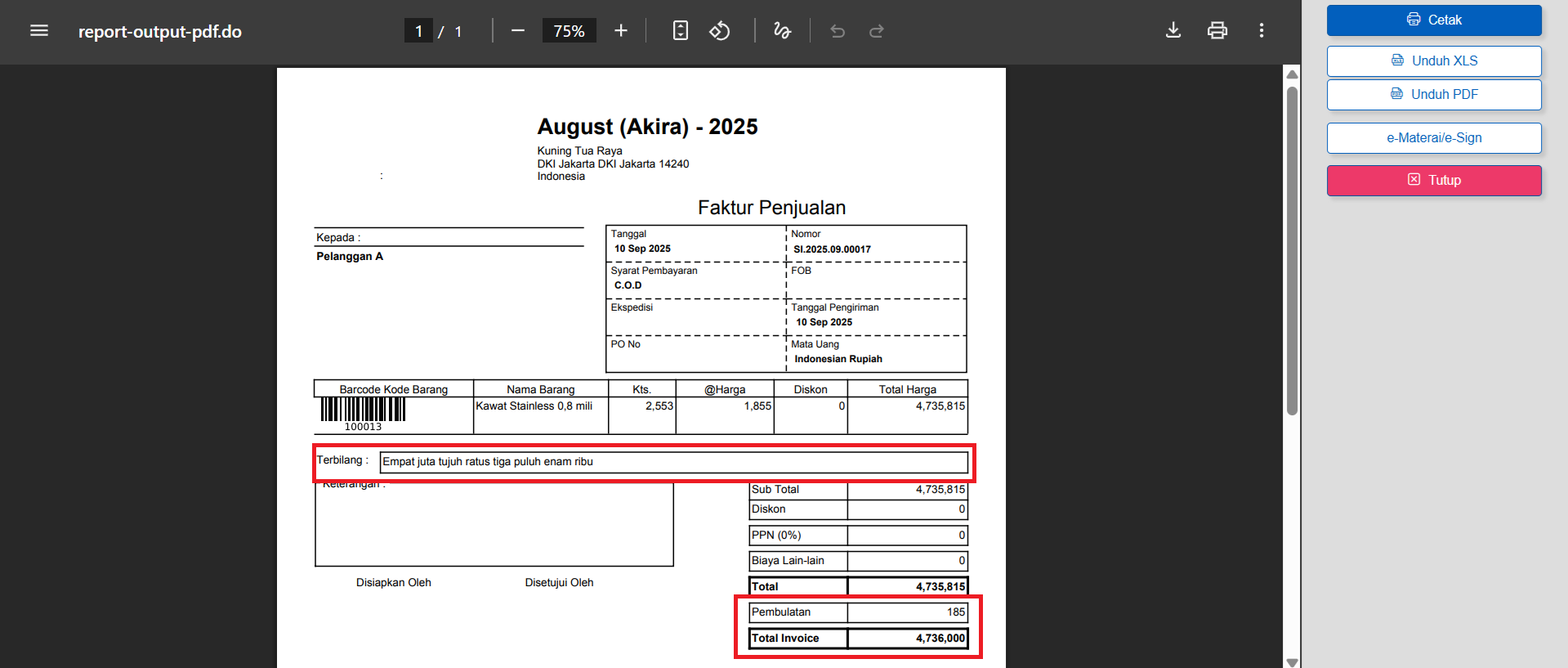 Contoh Faktur Penjualan Yang Akan dibulatkan Nilainya