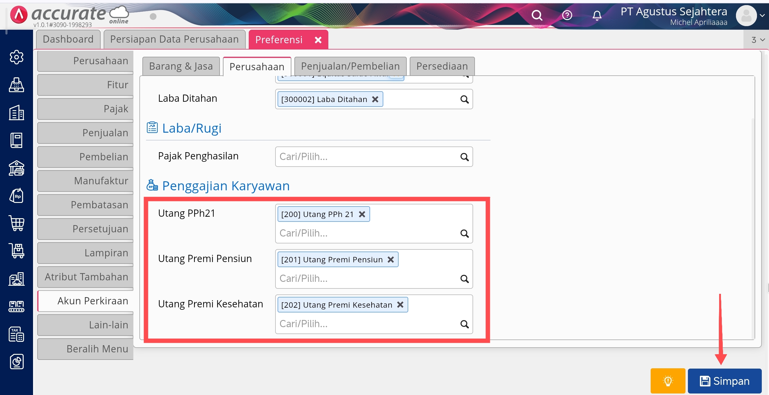 Pengaturan Preferensi Akun Perkiraan di Penggajian Karyawan