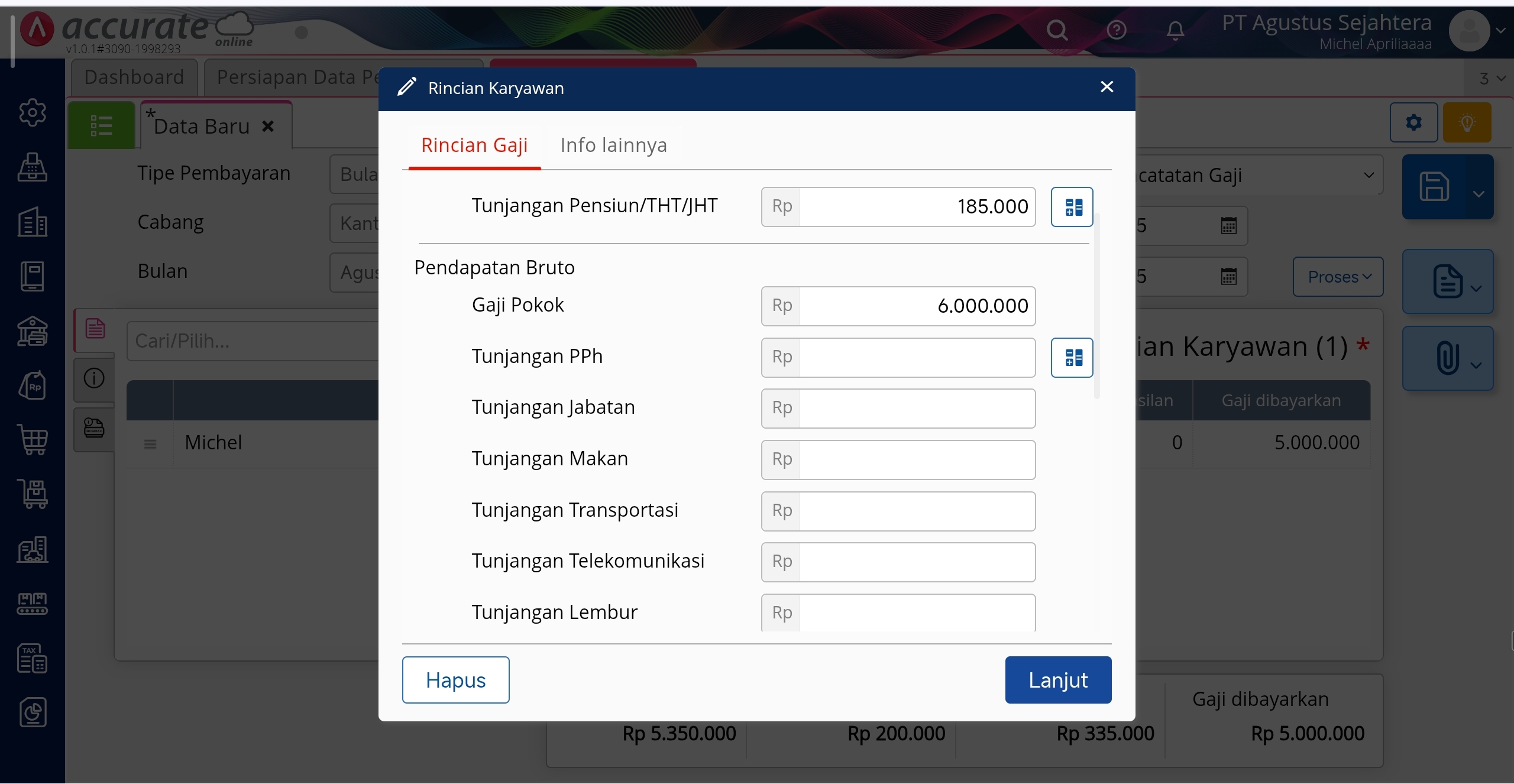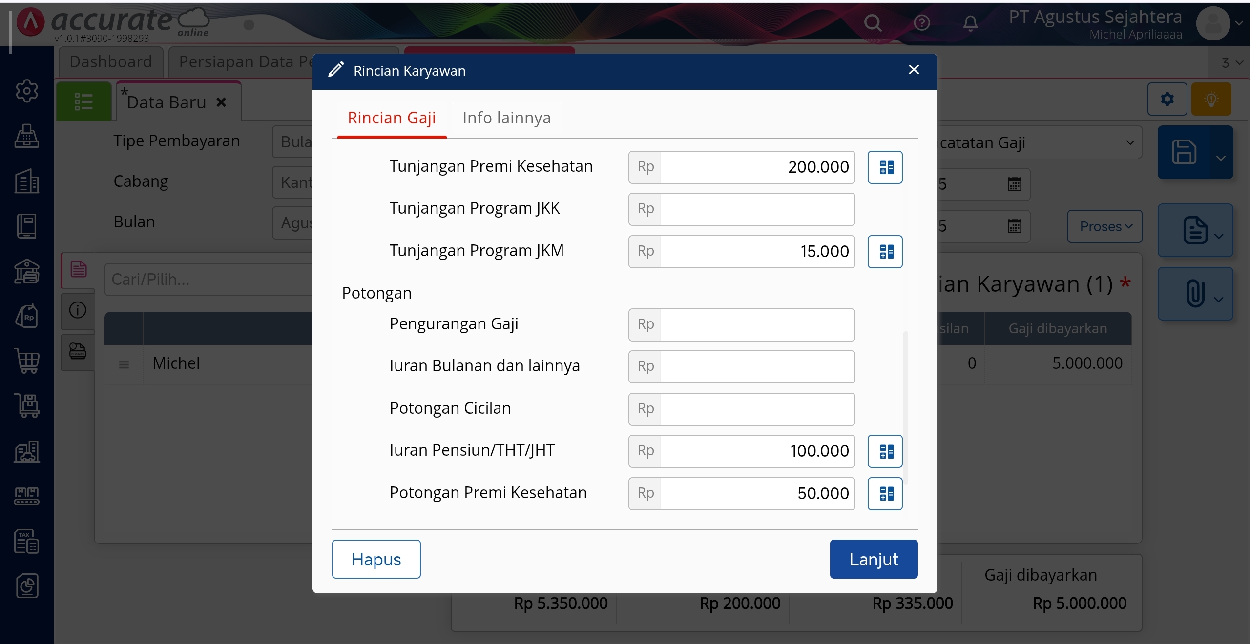 Rincian Gaji Karyawan