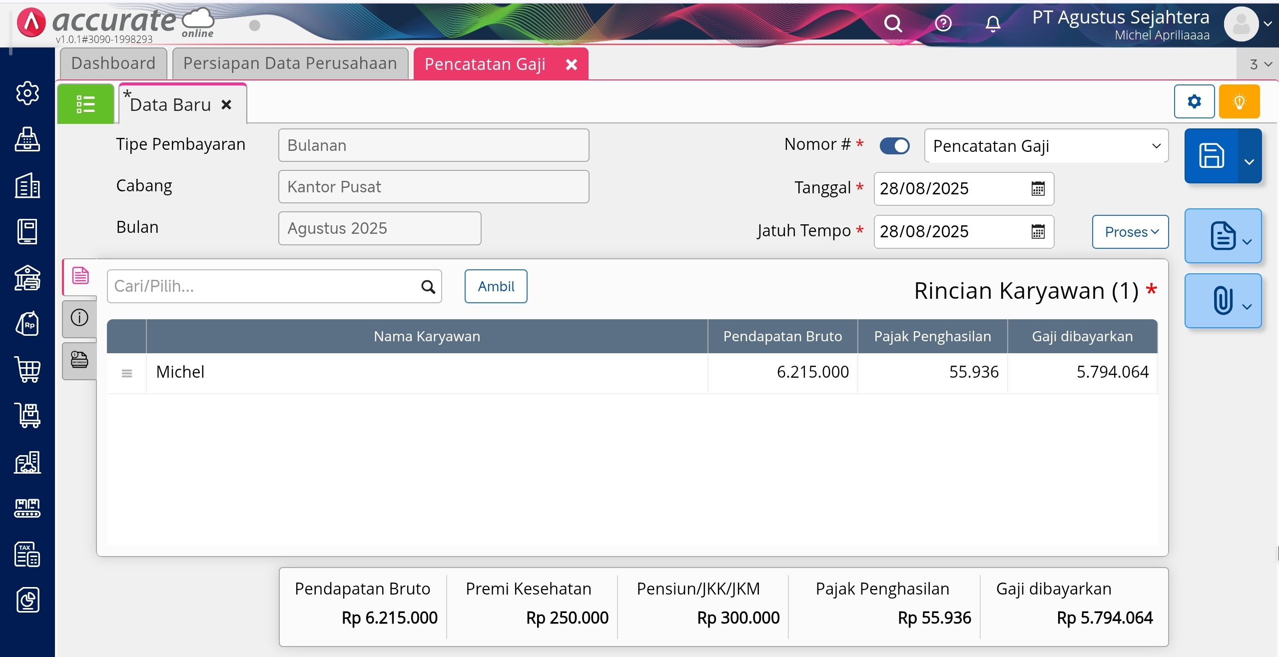 Tampilan Pencatatan Gaji Karyawan