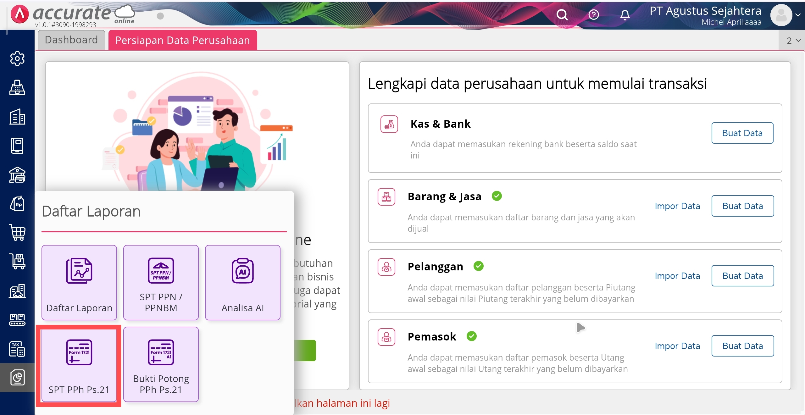 Berikut ini langkah-langkah yang perlu dilakukan agar pencatatan Gaji Karyawan bisa terhitung PPh 21 dan masuk ke dalam laporan SPT PPh 21 di Accurate Online :