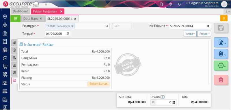 Tidak Mencentang Informasi Cetak/Email Faktur Penjualan