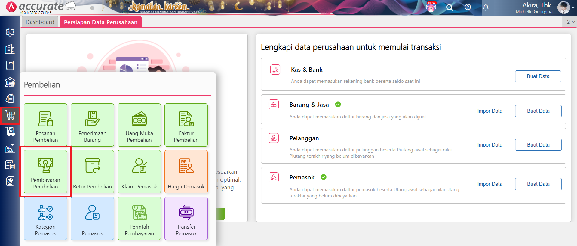 Berikut langkah-langkah yang perlu dilakukan untuk mencatat pelunasan utang saldo awal menggunakan transaksi uang muka pembelian: