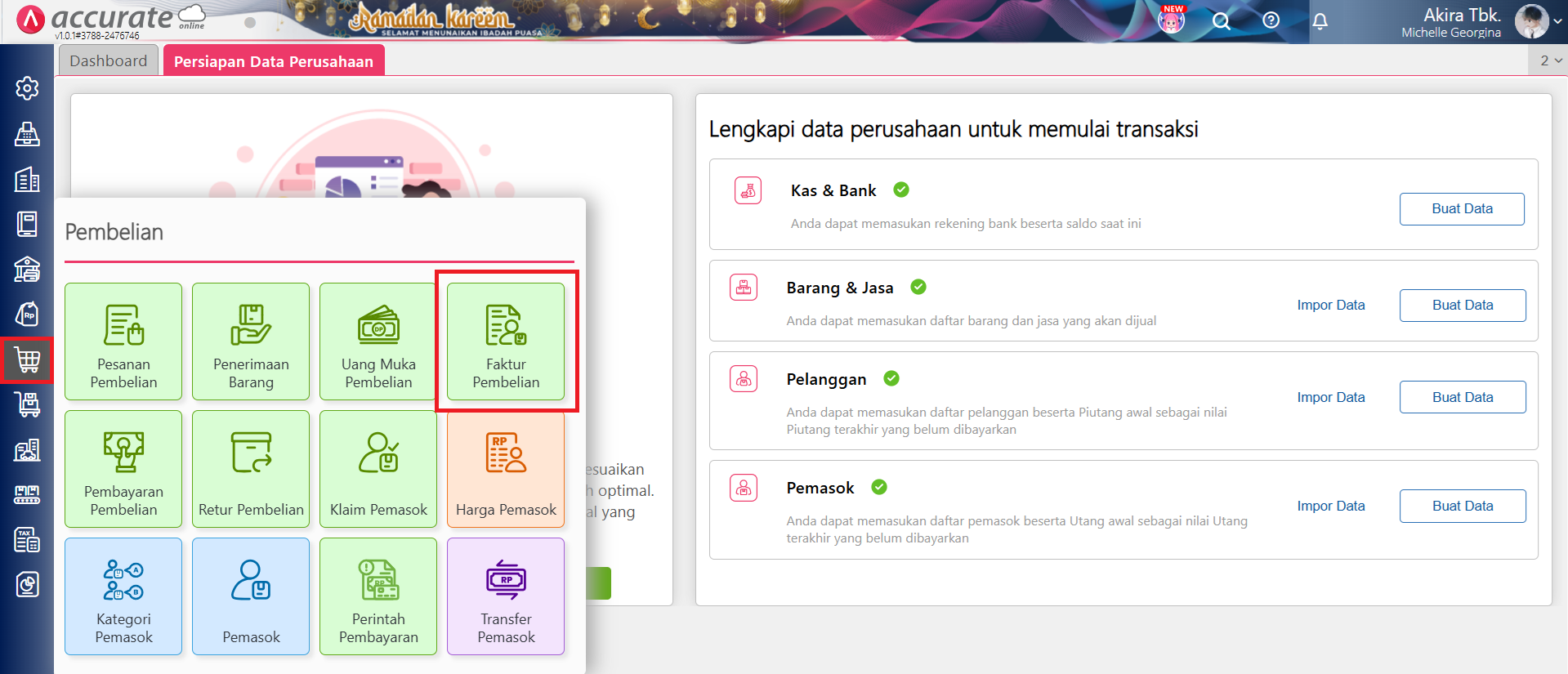 - Buka Faktur Pembelian yang dimaksud, melalui menu Pembelian | Faktur Pembelian.