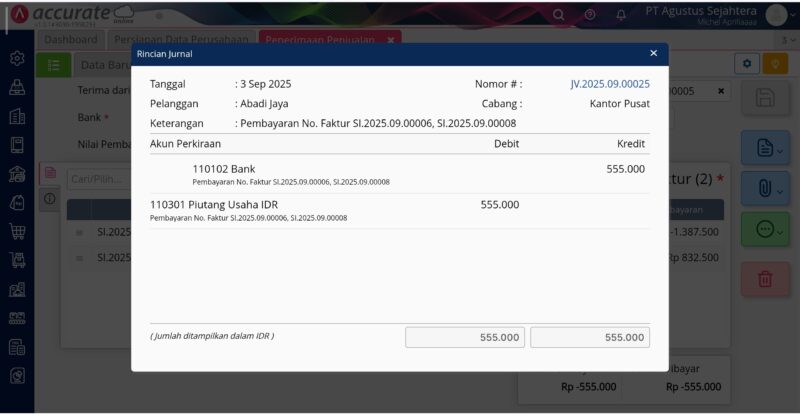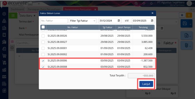 Daftar Faktur Belum Lunas di Penerimaan Penjualan
