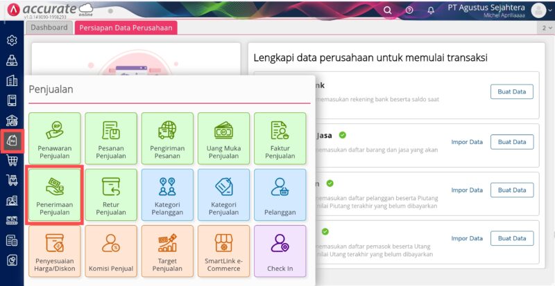 - Masuk ke menu Penjualan | Penerimaan Penjualan.