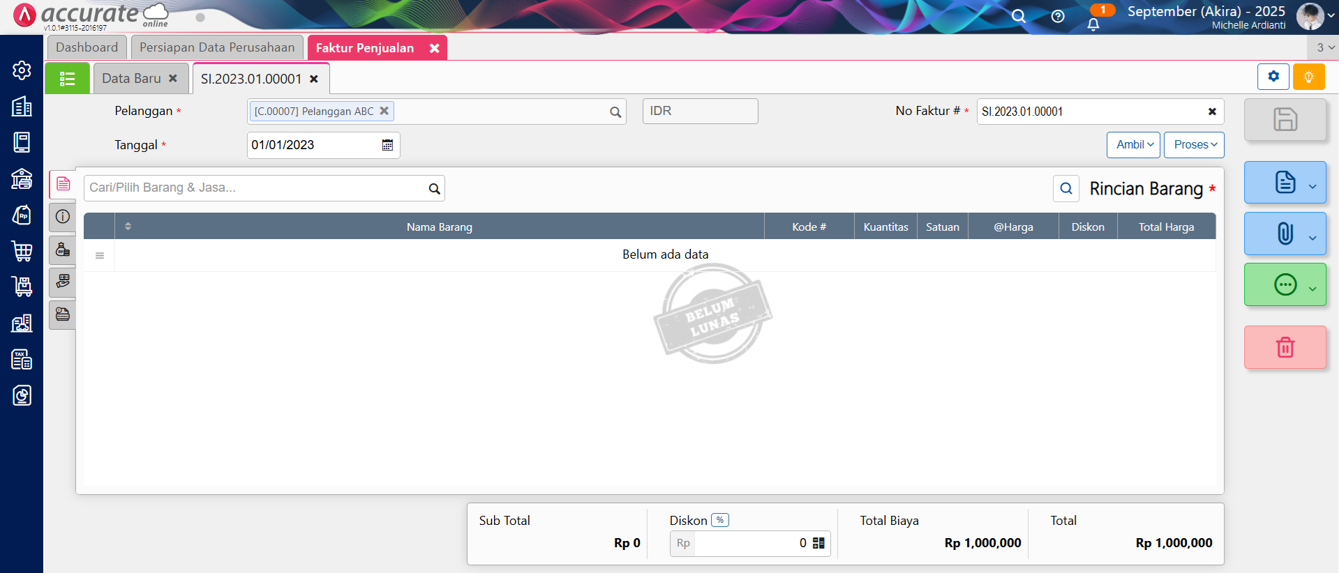 Pembuatan Faktur Penjualan atas saldo awal piutang pelanggan oleh Accurate, bertujuan agar bisa dilakukan penginputan pada modul Penerimaan Penjualan saat dilakukannya pelunasan dari Pelanggan.