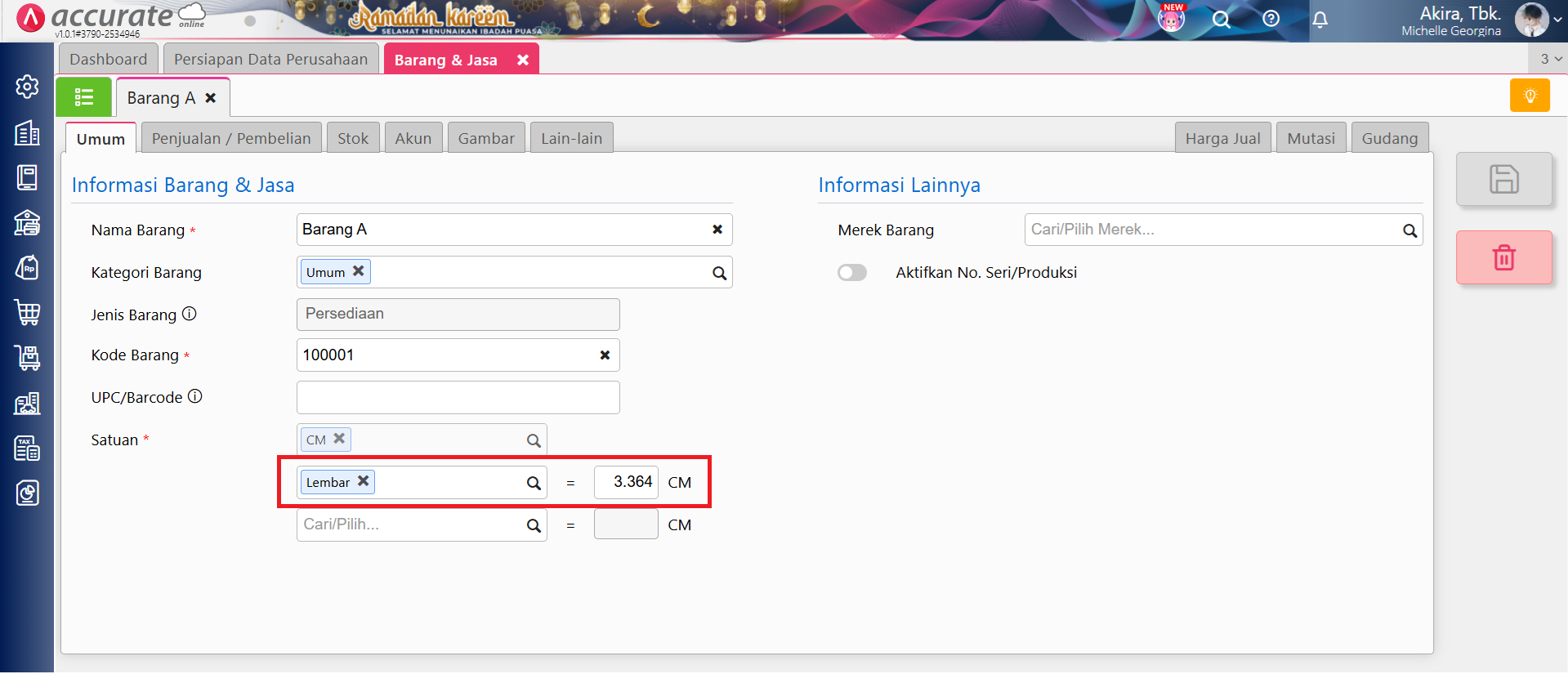 Contoh barang dengan satuan kedua
