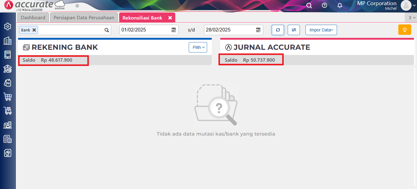 Perbedaan Saldo Rekening Bank dengan Jurnal Accurate Pada Rekonsiliasi Bank