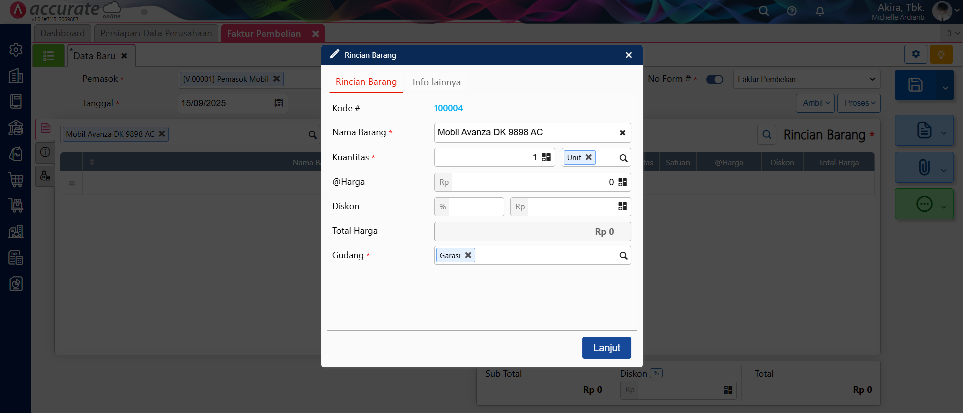 Keenan Mobil Rental adalah sebuah perusahaan yang bergerak di bidang sewa transportasi seperti mobil dan motor. Berikut kami simulasikan untuk contoh kondisi dan pencatatan transaksi pada perusahaan jasa rental mobil di Accurate Online :