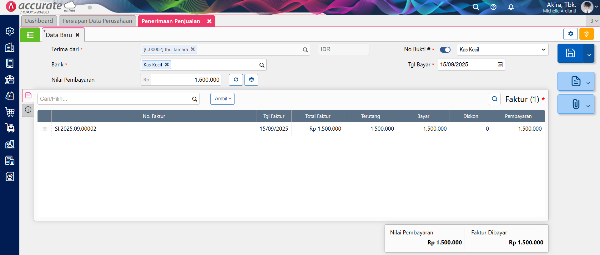 - Apabila ada Pelanggan yang akan menyewa mobil, buatkan Faktur Penjualannya dan pilih jasa yang sesuai. Lalu buatkan Penerimaan Penjualannya jika sudah dilakukan pelunasan.