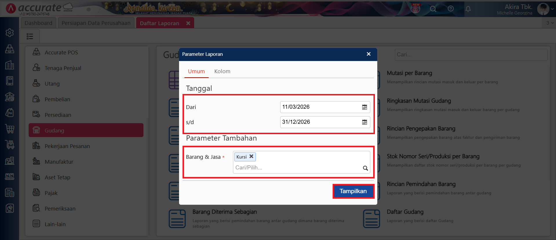 Atur Parameter Laporan