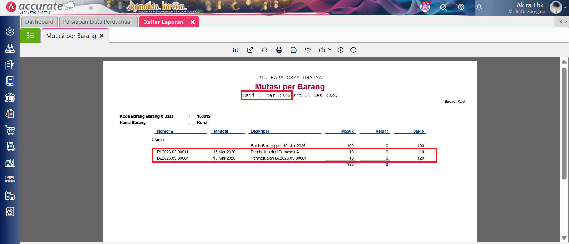 Tampilan Laporan Mutasi per Barang