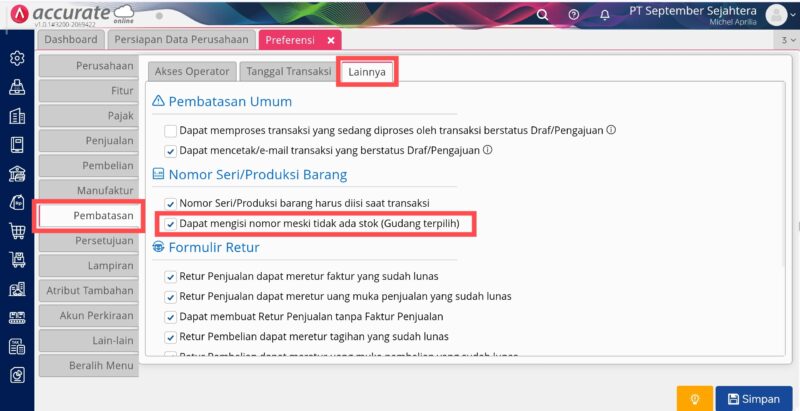 Mengaktifkan Fitur Bisa Mengeluarkan Stok Dengan Nomor Seri/Produksi yang Tidak Ada di Gudang