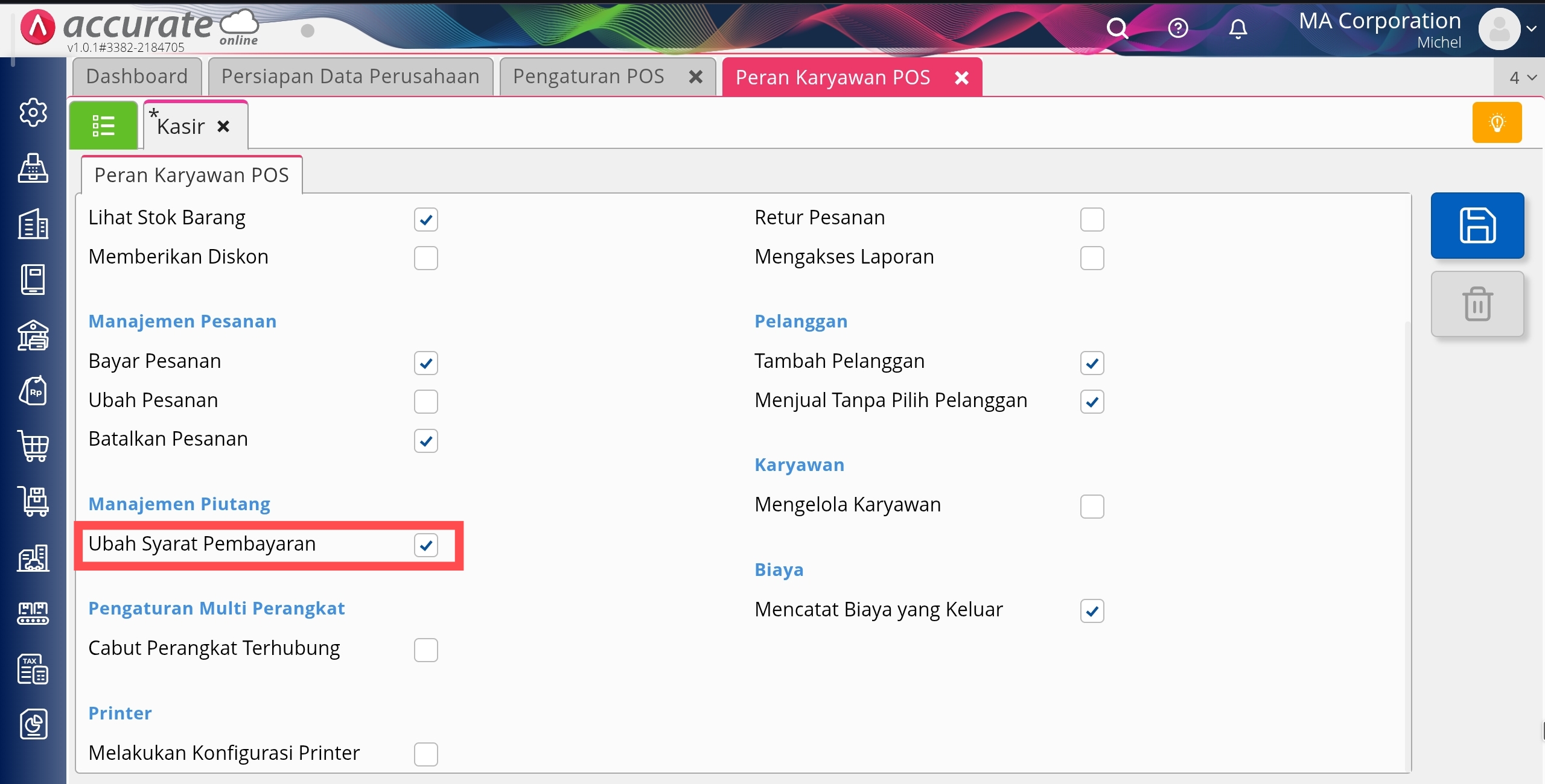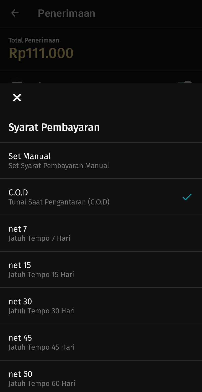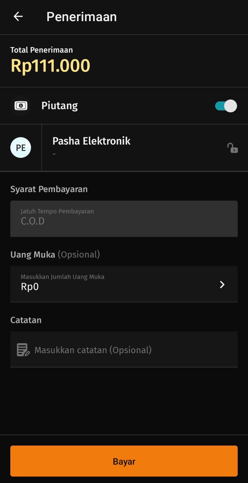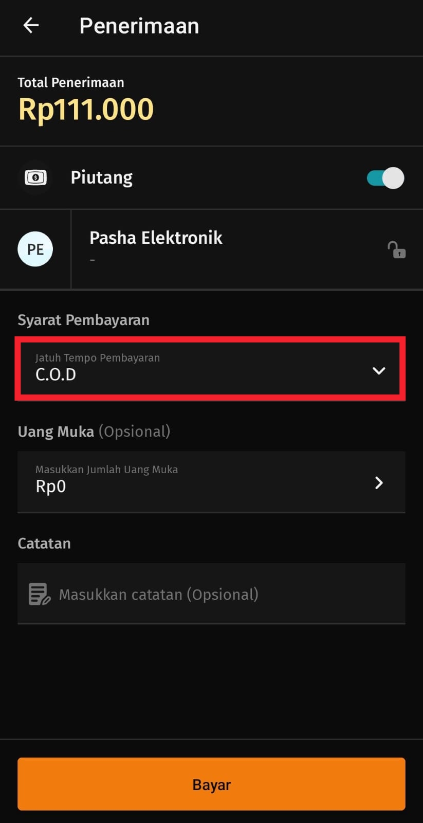 - Jika sudah, maka apabila karyawan tersebut melakukan penginputan transaksi piutang di Accurate POS, pada saat proses pembayaran/penerimaan, syarat pembayaran bisa dipilih dan tidak abu-abu lagi.