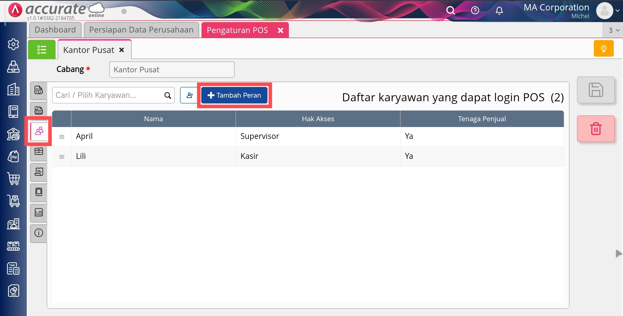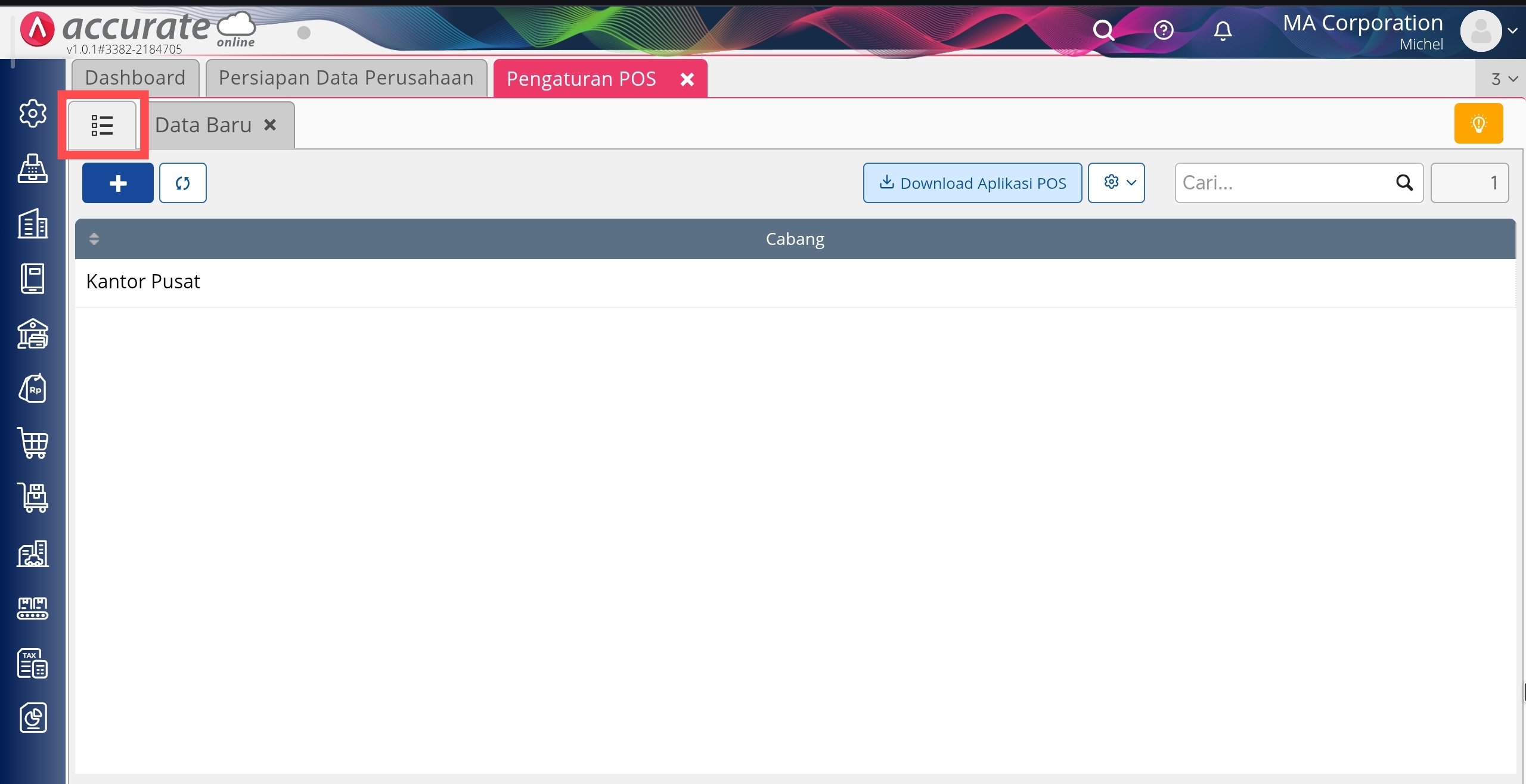 - Akses data usaha Accurate Online yang terintegrasi dengan Accurate POS, lalu buka menu Accurate POS | Pengaturan POS, dan pilih outlet (cabang) POS yang dimiliki.