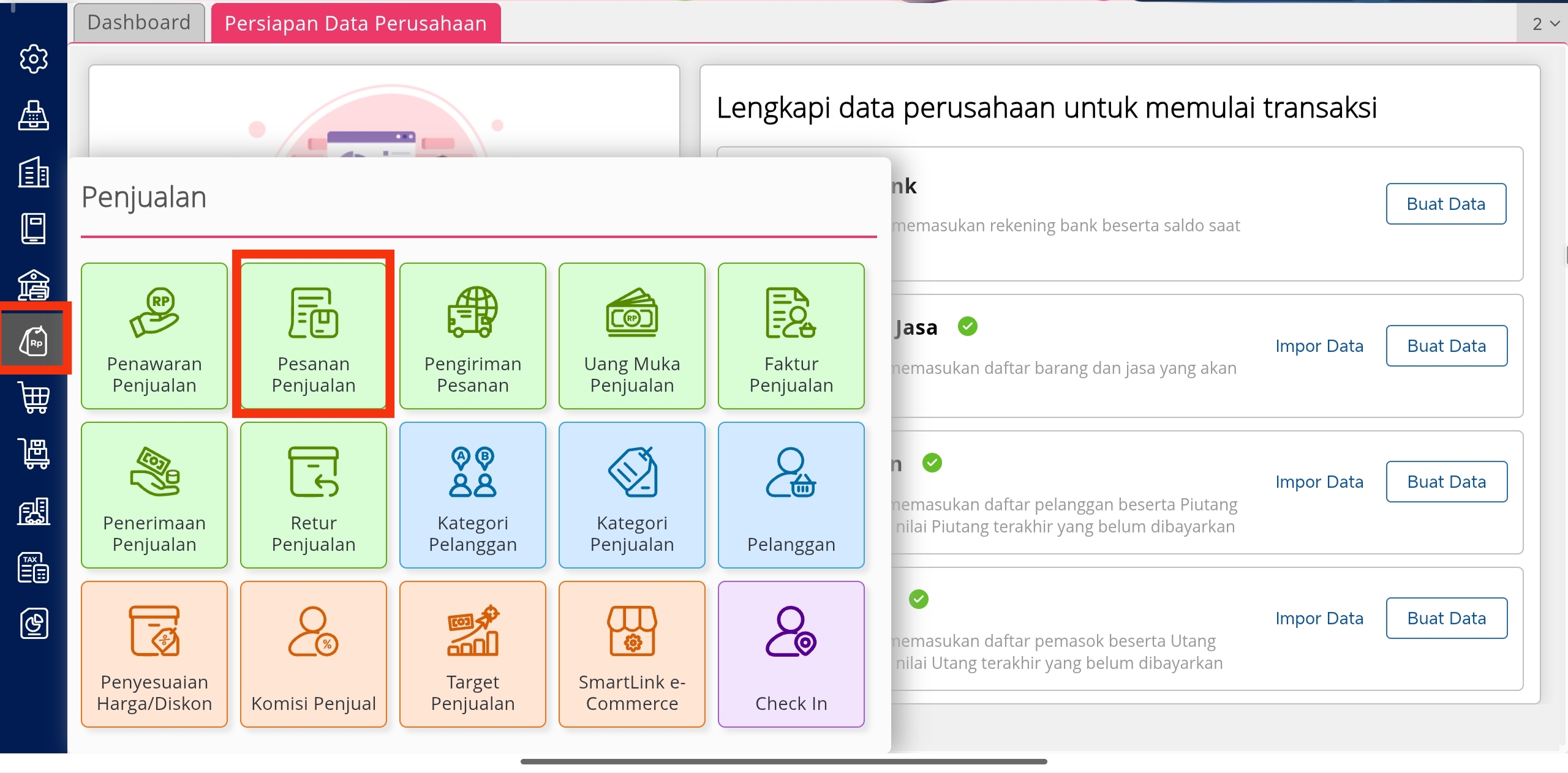 Menu Pesanan Penjualan